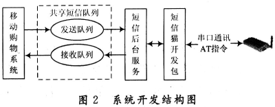 基于開發(fā)周期及成本的考慮,本系統(tǒng)采用開發(fā)包形式。短信貓開發(fā)包是針對(duì)目前常用短信模塊開發(fā)的短信應(yīng)用API集合,具有成熟穩(wěn)定、支持多種語言、高可靠性等特點(diǎn)特點(diǎn)。系統(tǒng)開發(fā)結(jié)構(gòu)圖如圖2所示。