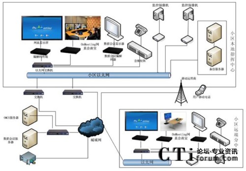Communication Server)服務(wù)器,實(shí)現(xiàn)OnMeeting網(wǎng)真預(yù)約會(huì)議、數(shù)據(jù)協(xié)同以及即時(shí)通信功能,使得網(wǎng)真視頻會(huì)議與社區(qū)管理中原有辦公和監(jiān)控系統(tǒng)有機(jī)的融合,提供了高清晰、高效率、1:1真人大小圖像的視頻通信,使得社區(qū)安防會(huì)商實(shí)現(xiàn)了更有效的溝通。