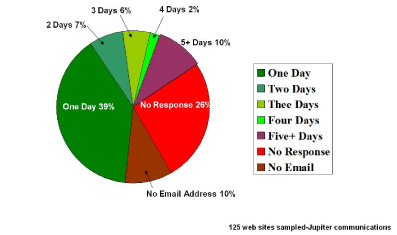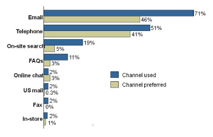 該報告進一步總結(jié)到,60%的網(wǎng)站客戶希望更多互動但許多電子商務(wù)企業(yè)無法回應(yīng)電子郵件且不能提供足夠的電話支持。也有很多電子商務(wù)企業(yè)提供電子郵件支持,比如說etoys,但對于如潮水般洶涌而來的電子郵件聯(lián)絡(luò)他們顯然沒有什么準(zhǔn)備以至于處理結(jié)果符合客戶預(yù)期的郵件少之又少。如果處理的好