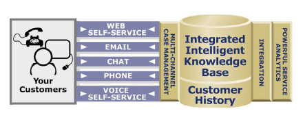 Technologies”是一家非常著名的多接觸點呼叫中心供應(yīng)商,這家公司建議采用“通用事故”追蹤機制,它強調(diào)報表和歷史紀錄必須作為任何一個多接觸點聯(lián)絡(luò)中心不可或缺的組成部分。“Rightnow”提供的以下插圖很清楚地向我們展示了多渠道知識庫集成是如何被強制執(zhí)行的。