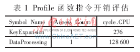 表1是CCS軟件Profile對各函數(shù)指令開銷的評估結果。