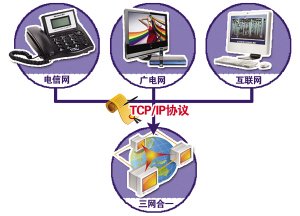 所謂三網(wǎng)融合,就是在同一個網(wǎng)上實(shí)現(xiàn)語音、數(shù)據(jù)和圖像的傳輸。對用戶而言,就是指只用一條線路可以實(shí)現(xiàn)打電話、看電視、上網(wǎng)等多種功能。