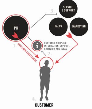 社會(huì)化CRM賦予了企業(yè)公關(guān)部門更重要的角色,通過(guò)公關(guān)部分與消費(fèi)者更多的互動(dòng),從中獲取消費(fèi)者的反饋信息、褒貶意見、新想法新創(chuàng)意。之后再通過(guò)銷售、市場(chǎng)推廣以及產(chǎn)品服務(wù)等措施來(lái)吸引更多目標(biāo)消費(fèi)群,并用公關(guān)活動(dòng)來(lái)進(jìn)一步推廣。