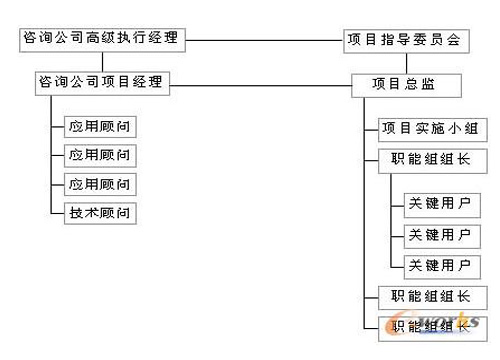 整個組織結(jié)構分三層,咨詢公司可以在每一層都安排相應人員予以支持。最高層為項目指導委員會,具有高度決策權。一般由總經(jīng)理主持,企業(yè)有關高層經(jīng)理和項目總監(jiān)作為成員。