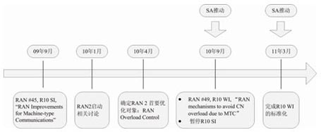 在2010年9月的RAN #49次全會上,在SA的推動下,RAN全會決定成立一個關(guān)于MTC的新的WI,用來解決避免大量MTC設(shè)備接入導(dǎo)致的核心網(wǎng)過載問題。2011年3月份,RAN2完成了此WI并在RAN全會上通過。圖4所示的是3GPP MTC R10標準化項目進程情況。