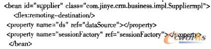 客戶層采用Flex4的Spark UI組件和ActionScript分別實(shí)現(xiàn)MVC模式的View和Control層,實(shí)現(xiàn)與系統(tǒng)用戶的交互,并通過(guò)Spring BalazeDs集成框架發(fā)布的Remote Object,實(shí)現(xiàn)與業(yè)務(wù)層對(duì)象的通訊,進(jìn)而完成CRM業(yè)務(wù)處理。如下代碼為Flex中聲明Remote Object: