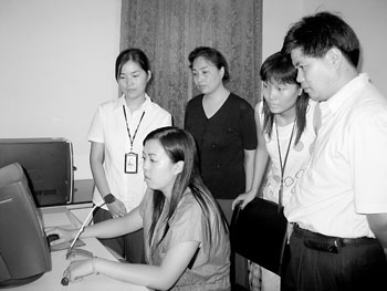 圖為南京電信增值業(yè)務部的同志到高淳縣供電局教用戶使用錄制軟件的情景。