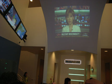 MediaFLO USA的前臺(tái)大廳布滿屏幕,說明它有媒體血緣。