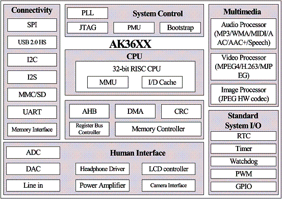 AK36系列PND方案的硬件架構(gòu)由AK36系列外接GPS模塊或芯片組組成,搭配MLC Nandflash海量存儲(chǔ)。軟件方面采用安凱自主研發(fā)的輕量級操作系統(tǒng)實(shí)現(xiàn)系統(tǒng)和多媒體等主要功能,內(nèi)置凱立德V3.0的導(dǎo)航版本。據(jù)安凱稱,該方案具有系統(tǒng)成本低、加工簡單、低功耗、平臺(tái)穩(wěn)定且開放性好、卓越的搜星性能等優(yōu)勢。