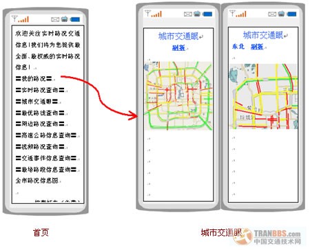 手機(jī)上通過短信查詢動(dòng)態(tài)交通信息,提供動(dòng)態(tài)路徑規(guī)劃,定制道路路況播報(bào)。