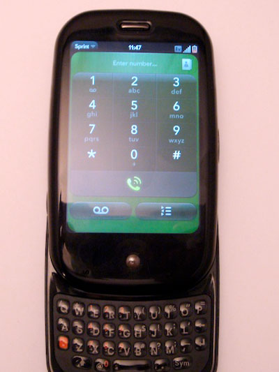 Palm Pre采用滑蓋設(shè)計(jì),這樣留出了更充足的顯示空間。不過(guò)鍵盤(pán)按鍵之間的空隙有些小,成年人的拇指就能蓋上3或4個(gè)按鍵,而且其使用的材質(zhì)也需要一些時(shí)間來(lái)適應(yīng)(鍵盤(pán)已經(jīng)成為其初期最受抱怨的部分)。鍵盤(pán)的涂層比較像Centro或Treo