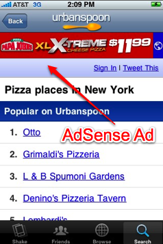 AdSense旋風(fēng)已經(jīng)刮到了iPhone和Android應(yīng)用程序里,目前iPhone的UrbanSpoon和Android的Shazam都已經(jīng)開始集成Mobile AdSense,根據(jù)當(dāng)前應(yīng)用所顯示的內(nèi)容、你所在的地理位置、應(yīng)用的類別和關(guān)鍵字來匹配最合適的廣告。目前Mobile AdSense還在beta測試,只支持iPhone和Android應(yīng)用程序,參加beta測試的應(yīng)用程序要求每天至少要有10萬次的廣告展示機(jī)會(huì),并在4周內(nèi)將內(nèi)置Mobile AdSense的應(yīng)用程序更新上線。
