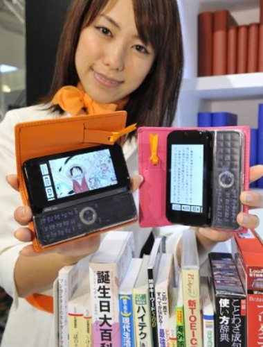 日本第二大電信服務商KDDI與東芝合作推出以“Biblio”命名的手機,以電子書瀏覽器作為最大賣點。該機內(nèi)建7GB內(nèi)存,3.5吋觸摸式液晶顯示屏,外型及包裝設計都和Amazon Kindle相似,配備WIFI、510萬像素鏡頭及電子辭典功能。