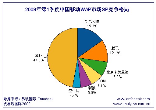2009年第1季度中國移動(dòng)WAP市場(chǎng)集中度提高前五名占據(jù)市場(chǎng)半壁江山