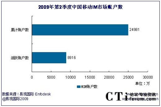 2009年第2季度中國(guó)移動(dòng)IM市場(chǎng)活躍賬戶數(shù)達(dá)8916萬(wàn)