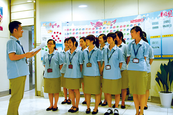 “玉不琢,不成器!彪m說(shuō)目前社會(huì)的就業(yè)壓力源自于復(fù)雜的社會(huì)原因,可是在客服中心人力資源室的陳依群主管看來(lái),有些還在于80后年輕人的自身原因。“這些年我做招聘工作以來(lái),看到了一些年輕人抱著希望進(jìn)來(lái)以后,因?yàn)槭懿涣藟毫τ滞顺隽恕T诰蜆I(yè)壓力巨大的情況下,多是獨(dú)生子女的80后一代,還沒(méi)有完全樹(shù)立起正確的就業(yè)觀和務(wù)實(shí)的工作態(tài)度。我們的原則是,凡是進(jìn)入我們公司的員工和見(jiàn)習(xí)學(xué)生,都要經(jīng)歷嚴(yán)格的培訓(xùn),接受規(guī)范的管理,接受我們公司企業(yè)文化的熏陶。通過(guò)見(jiàn)習(xí),我們也發(fā)現(xiàn)了很多真正會(huì)發(fā)光的優(yōu)秀人才!