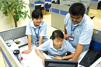 其實(shí),和孫亞一樣幸運(yùn)的見(jiàn)習(xí)人員在客服中心很多,這全都得益于客服中心健全的管理機(jī)制。為了有效激勵(lì)和約束見(jiàn)習(xí)人員,提高工作績(jī)效和業(yè)務(wù)水平,中心制定了一系列的激勵(lì)制度,并通過(guò)員工成長(zhǎng)管理、實(shí)行績(jī)效薪酬、提高福利待遇和其他獎(jiǎng)勵(lì)等多種方式予以實(shí)施。葉主管介紹說(shuō):“我們除了給每位見(jiàn)習(xí)人員發(fā)放高于政府標(biāo)準(zhǔn)的見(jiàn)習(xí)工資外,還免費(fèi)提供午餐。對(duì)于表現(xiàn)優(yōu)異的人員,我們還會(huì)給他們提供崗位競(jìng)聘的機(jī)會(huì)!
