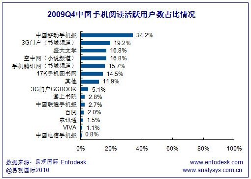 2009年Q4中國手機閱讀市場用戶活躍度進(jìn)一步提升