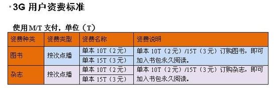 據(jù)了解,中國(guó)聯(lián)通手機(jī)閱讀業(yè)務(wù)只針對(duì)聯(lián)通網(wǎng)內(nèi)手機(jī)用戶,采用按次點(diǎn)播(按本訂購(gòu))的資費(fèi)標(biāo)準(zhǔn)。同時(shí),2G用戶和3G用戶采用不同的支付方式,2G用戶使用手機(jī)話費(fèi)支付,3G用戶使用M/T支付。
