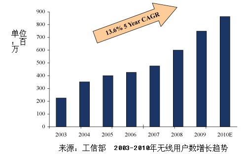 中國的移動增值服務(wù)和移動支付解決方案的發(fā)展與手機行業(yè)的增長密切相關(guān)。根據(jù)工信部的調(diào)查,截止2009年年底,有7.47億人擁有手機,其中2.33億的用戶曾至少使用一次手機瀏覽。工信部2010年4月發(fā)布的一份數(shù)據(jù)顯示,中國的無線用戶數(shù)在2010年底預(yù)計將達到8.64億,復(fù)合年均增長率達14%,國內(nèi)電信行業(yè)的總營收在2010年將增長到4250億元。中國手機產(chǎn)業(yè)快速發(fā)展的趨勢主要是中產(chǎn)階層的推動以及3G的發(fā)展。此外,艾瑞預(yù)測,手機瀏覽器的的用戶數(shù)可能增長125%達到2012年的5.24億。