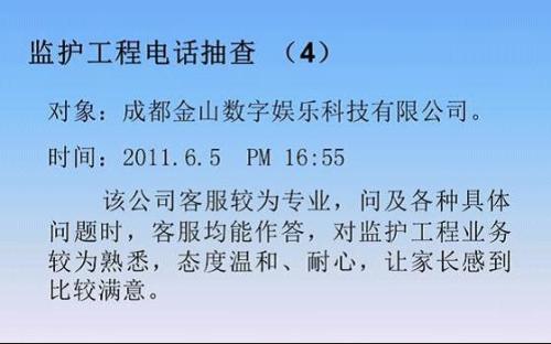金山游戲客服經(jīng)過6年多的發(fā)展,客服的服務(wù)水準和管理日趨完善。楊靜一表示,金山客服的服務(wù)理念是“金色心服務(wù)”,“金色”代表陽光、溫暖,“心”代表真誠、用心,金色“心”服務(wù)就是真誠用心地為玩家服務(wù),讓玩家在服務(wù)中感受到陽光與溫暖。