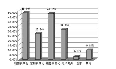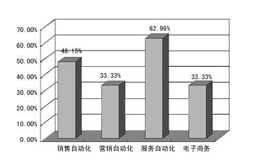 在已實施CRM企業(yè)的情況中,實施模塊最多的是服務自動化,其次是銷售自動化;但那些沒用CRM的企業(yè),準備先上銷售自動化模塊的企業(yè)最多,而服務自動化其次。對于CRM軟件市場來說,銷售自動化和服務自動化仍是主流。