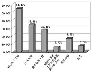 從結(jié)果上看,企業(yè)實施的最大動力是“提升客戶服務水平”。這說明,企業(yè)對CRM的理解還僅僅停留在初級階段,尚沒有充分認識到對企業(yè)提升銷售業(yè)績、營銷管理水平有著重要作用。這其實也反應了我國企業(yè)目前的管理水平。