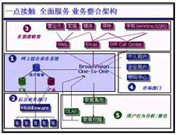 在“一對(duì)一模式”中,BroadVision公司可以為原有后臺(tái)系統(tǒng)提供有機(jī)的整合(如連接用戶(hù)的記費(fèi)、業(yè)務(wù)、用戶(hù)數(shù)據(jù)系統(tǒng)),使其在前臺(tái)可提供多種用戶(hù)的接入手段,形成業(yè)務(wù)的完整流程,如通過(guò)多種接入手段提供查詢(xún)、咨詢(xún)、受理、投訴等業(yè)務(wù);電信企業(yè)還可通過(guò)此平臺(tái)提供增值業(yè)務(wù),如電子商務(wù)、信息服務(wù)、代繳費(fèi)等。