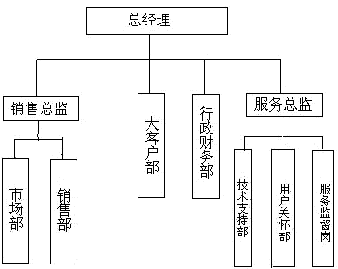 經(jīng)過討論,結合公司的實際情況,Z公司迅速采納了項目組提出的建議,并在CRM項目啟動大會上宣布項目開始實施。而且調(diào)整了組織結構,新的結構如圖2所示。整個CRM項目分兩個階段實施,第一階段實現(xiàn)銷售業(yè)務的跟蹤監(jiān)控,以及部分市場信息的共享傳遞,第二階段再將公司的市場管理、服務管理、用戶關懷等業(yè)務流程納入整個系統(tǒng)。