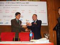 中國最佳CRM實施的授獎儀式已在2003年CRM論壇·中國上如期舉行,共有300余人參加了本次論壇(北京,上海和深圳會場)。|