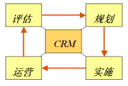 如圖所示,CRM的實(shí)施步驟是診斷-規(guī)劃-實(shí)施-評(píng)估的閉環(huán)的過程,保證了"大處著眼、小處入手、迅速見效"。這樣保證了既有長遠(yuǎn)的規(guī)劃和目標(biāo),又能夠步步為營,鞏固實(shí)施成果。