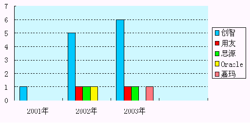 圖5:2001年至2003年10月底導(dǎo)入CRM的房地產(chǎn)企業(yè)分布數(shù)據(jù)統(tǒng)計。