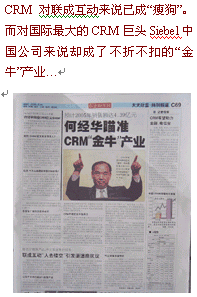 而此前Siebel在中國市場一直采取"大鯨不游淺水"策略,保持低調(diào),冷眼旁觀,并未投入大量人力財力在中國市場,此次巨資籠絡(luò)何經(jīng)華,是否Siebel認為中國CRM這個"淺池子"開始加深了?