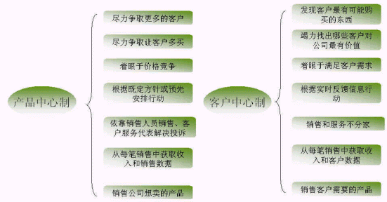 蓋洛普認為新型的企業(yè)與客戶的關(guān)系應(yīng)當是以"客戶為中心"與客戶的互動關(guān)系,通過滿足客戶需求提高客戶滿意度來吸引和留住客戶,從而建立和保持企業(yè)的競爭優(yōu)勢。這其實就是從產(chǎn)品中心制到客戶中心制的演變的體現(xiàn),如下圖: