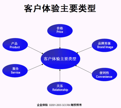 一家企業(yè)(或一個品牌)可以直接或間接讓客戶體驗的,主要類別為產(chǎn)品、服務、關系、價格、便利性、品牌形象。在不同行業(yè),對不同目標市場與客戶,每種類別的重要性各不一樣。但最終客戶體驗的好與壞都離不開這些因素,亦是客戶為什么光顧(或不光顧)的原因(見圖三、客戶體驗主要類型)。
