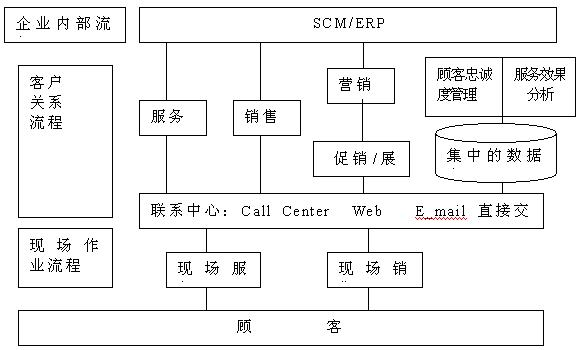 不同行業(yè)的CRM內(nèi)容是不一樣,因此在深入研究制造業(yè)、服務、金融、電信等行業(yè)客戶關系管理的不同點,借鑒其他行業(yè)客戶關系管理經(jīng)驗的基礎上,提出了綜合消費品、工業(yè)品及汽車制造業(yè)的管理需求的,體現(xiàn)制造業(yè)特點的客戶關系管理模型,如圖1所示: