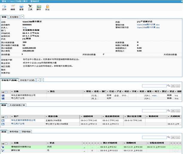 VamCRM的營銷戰(zhàn)役,可以自動(dòng)統(tǒng)計(jì)有多少線索成功轉(zhuǎn)化為業(yè)務(wù)機(jī)會,有多少線索最終簽單,從而使得企業(yè)相關(guān)管理人員可以對營銷戰(zhàn)役的效果得到直觀的量化評估,對市場活動(dòng)的投資收益做到心中有數(shù)。