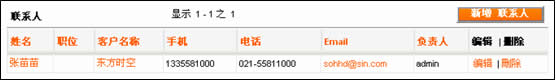 比起Salesforce,XToolsCRM新建聯(lián)系人的界面友好得多,基本上沒(méi)有界面的切換,整個(gè)過(guò)程完全在客戶試圖內(nèi)實(shí)現(xiàn),Ajax技術(shù)的應(yīng)用發(fā)揮了很好的作用。另外,XToolsCRM聯(lián)系人的信息顯示方式很特殊,一改常見的水平列表、以單元塊的方式并列展示,多聯(lián)系人時(shí)視覺效果也很好。