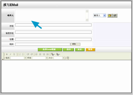 值得推薦的是它的Email字段,因?yàn)橐卓蛢?nèi)嵌了Email服務(wù)器,點(diǎn)擊聯(lián)系人email后直接調(diào)用易客CRM自身的撰寫新郵件界面,較之前面兩種CRM的方式,與郵件系統(tǒng)契合更加緊密。不足之處在于,在彈出的撰寫郵件窗口中收件人部分并沒(méi)有自動(dòng)填寫該聯(lián)系人,而是以不可編輯的方式出現(xiàn),推測(cè)可能和試用版有關(guān)。如下圖: