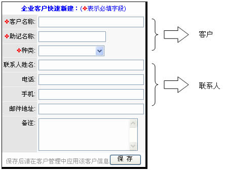 客戶名稱為必填字段,其它字段均可在保存后逐漸豐富。