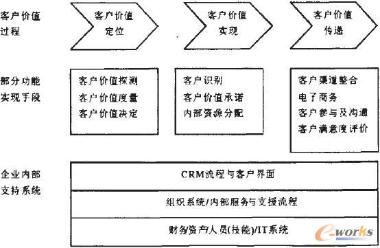 (1)基于客戶價值過程而非基于客戶生命周期來劃分不同的階段,分為客戶價值定位、客戶價值實現(xiàn)和客戶價值傳遞三個階段。