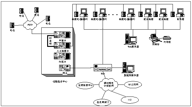 系統(tǒng)包括投訴建議處理、話路控制、秘書臺、電信業(yè)務咨詢、綜合統(tǒng)計、公告板、Web處理等業(yè)務模塊,以及系統(tǒng)用戶管理、錄音提取、基本設置、傳真管理等管理模塊,并實現了與97系統(tǒng)、112系統(tǒng)的互聯與資源共享。系統(tǒng)自九八年年底試運行以來,運行穩(wěn)定,為180臺受理用戶咨詢投訴的處理工作帶來較大幫助,基本解決了用戶投訴、查詢難的問題,提高了電信服務質量,改善電信行業(yè)形象。