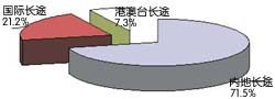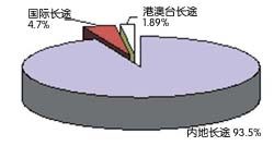 ● 中國(guó)IP電話(huà)國(guó)際長(zhǎng)途通話(huà)時(shí)長(zhǎng)已經(jīng)占到國(guó)際長(zhǎng)途話(huà)務(wù)量的20%,分流了大批的國(guó)際話(huà)務(wù)量,這也是固定電話(huà)國(guó)際長(zhǎng)途話(huà)務(wù)量和港澳臺(tái)長(zhǎng)途話(huà)務(wù)量出現(xiàn)負(fù)增長(zhǎng)的主要原因。