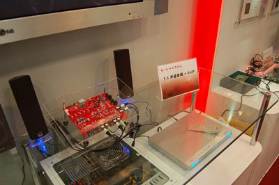 SigmaTel是給家庭影院增加了VOIP功能,如果你在聽(tīng)音樂(lè)的時(shí)候想和朋友通話,你可以利用PC上的無(wú)線VOIP和數(shù)字麥克風(fēng)輕松實(shí)現(xiàn)交流。SigmaTel的STAC9271、9272、9273等系列產(chǎn)品是10聲道音頻編解碼器,可以實(shí)現(xiàn)帶同步VOIP或立體聲7.1音頻系統(tǒng)。利用SigmaTel的knowles麥克風(fēng)波束成型、回聲消除和噪聲抑制技術(shù),可以獲得清晰的VOIP通話質(zhì)量。SigmaTel亞洲區(qū)軟件開(kāi)發(fā)經(jīng)理辛志華表示,這方面的開(kāi)發(fā)難點(diǎn)是軟件部分,不SigmaTel可以提供全套的軟件幫助客戶(hù)快速開(kāi)發(fā)出產(chǎn)品。