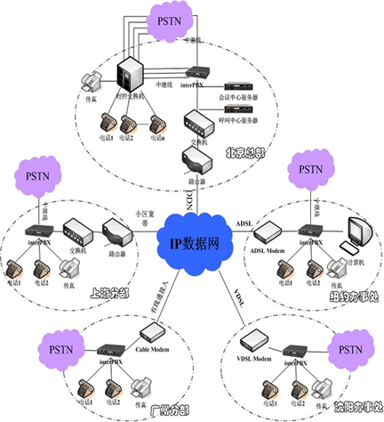 北京正有公司為企業(yè)專門設(shè)計了一套interPBX解決方案,利用企業(yè)自有的數(shù)據(jù)網(wǎng)構(gòu)建覆蓋整個企業(yè)的VPTN網(wǎng)絡(luò)電話系統(tǒng),該套系統(tǒng)具備與傳統(tǒng)PSTN電話網(wǎng)絡(luò)實(shí)現(xiàn)無縫連接的能力,在不影響工作效率的前提下達(dá)到降低通話費(fèi)用的目的,同時可以完成企業(yè)所需要的其它增值服務(wù)功能,如電話會議、呼叫中心等。