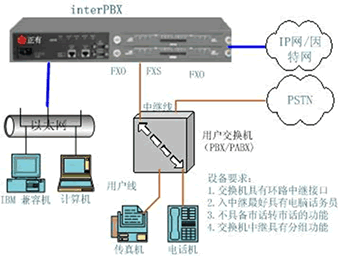 在實(shí)際使用過程中,經(jīng)常會出現(xiàn) interPBX與已有的PBX搭配使用的情況。interPBX與PBX搭配使用有很多好處,例如節(jié)省整個系統(tǒng)的設(shè)備投入成本、有效利用現(xiàn)有的布線及電話機(jī)等。