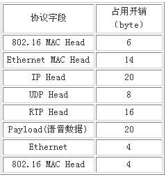 K,其實際映射到WIMAX空口的整個過程是需經很多次封裝。各種封裝協(xié)議所額外占用的開銷,如表1所示。