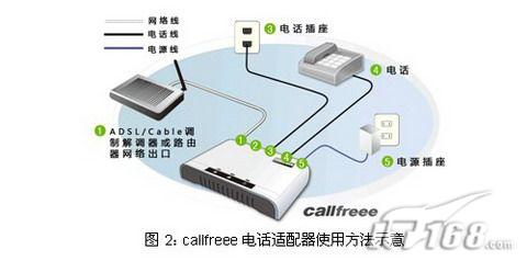 這不僅僅意味著用戶不需要高價購買設(shè)備,不需要支付任何的月租費,更重要的是用戶不需要擔(dān)心設(shè)備廠商服務(wù)質(zhì)量下降甚至中斷設(shè)備的使用。而且callfreee電話適配器配置完成以后使用方式非常簡單,用戶不需要更換電話機、變更電話號碼和和撥號方式,使用方法如下圖所示:
