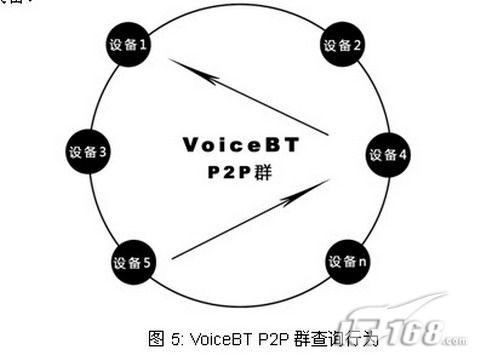 查詢行為如圖5所示:1—n 號設(shè)備組合在一起形成一個智能P2P群;第n號設(shè)備只要和第1-5號設(shè)備中的任意一個設(shè)備撥打過網(wǎng)絡(luò)電話,則第n號設(shè)備就加入了這個VoiceBT群。如果5號設(shè)備需要尋找1號設(shè)備,當(dāng)他發(fā)現(xiàn)1號設(shè)備的撥號序列和IP地址定位信息丟失以后,它可以向VoiceBT