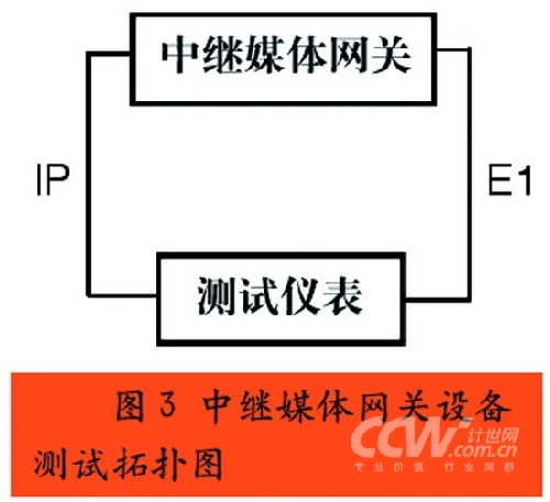 我國通信行業(yè)國家標(biāo)準(zhǔn)《IP中繼媒體網(wǎng)關(guān)設(shè)備測試方法》中明確了中繼媒體網(wǎng)關(guān)十個大項的測試,分別是基本功能測試、接口測試、協(xié)議測試、通信流程測試、網(wǎng)管功能測試、性能測試、可靠性測試、網(wǎng)同步測試、常規(guī)測試和環(huán)境測試。按照圖3所示的測試拓?fù)鋱D進行連接,使用測試儀表仿真軟交換、綜合接入設(shè)備和程控交換機,就可以按照測試方法中的測項要求,逐一得出測試結(jié)果。